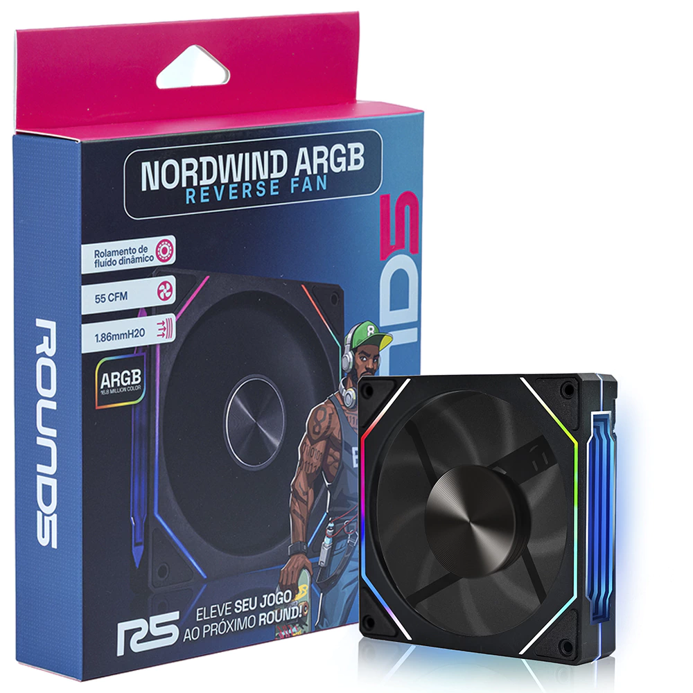 O Fan Nordwind Reverse Round5 é a solução definitiva para o fluxo de ar e a estética do seu PC Gamer. Este modelo inovador possui pás invertidas, permitindo que o fan seja usado para puxar o ar para dentro do gabinete enquanto exibe a beleza total da sua iluminação ARGB – ideal para montagens com fans na parte inferior ou lateral.