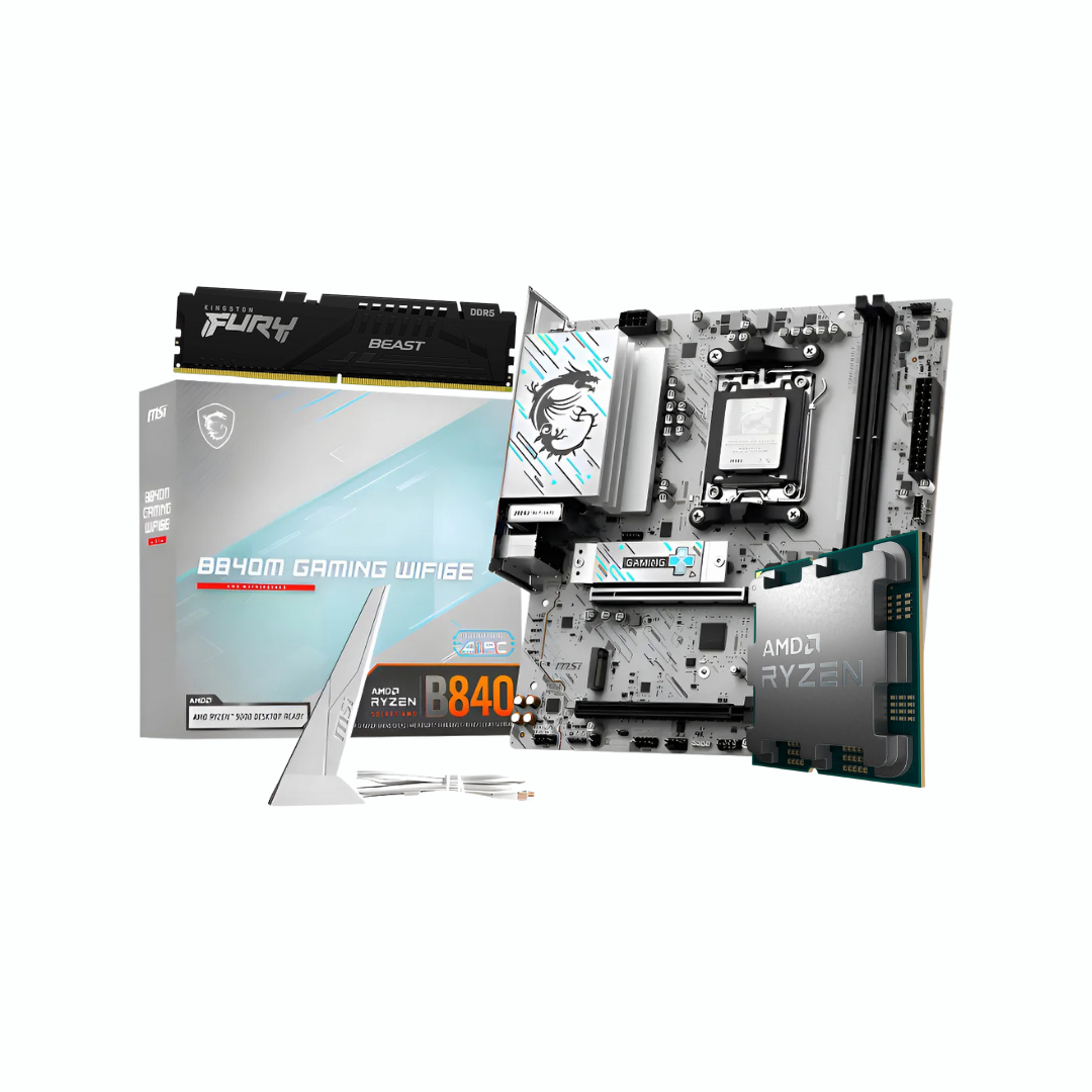 Conteúdo da Embalagem: 1x Processador AMD Ryzen 7 7700 (Box com Cooler), 1x Placa Mãe MSI B840M GAMING WIFI6, 1x Módulo/Kit Memória Kingston 16GB DDR5 5200Mhz.