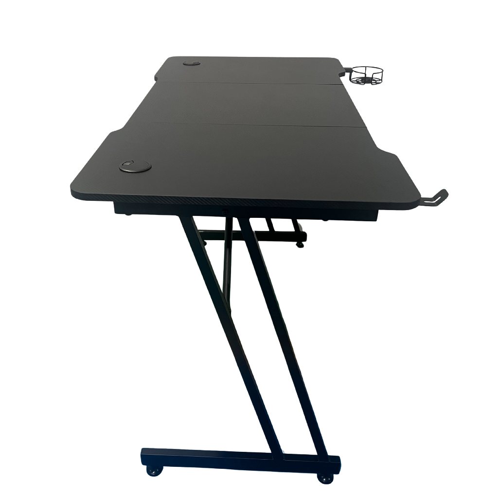 Sua estrutura é construída em aço reforçado, garantindo que a mesa permaneça estável mesmo durante as partidas mais intensas. O tampo possui um acabamento premium resistente a riscos, unindo durabilidade e uma estética sóbria que combina com qualquer periférico RGB. É a escolha inteligente para quem quer organizar sua estação de batalha com eficiência.